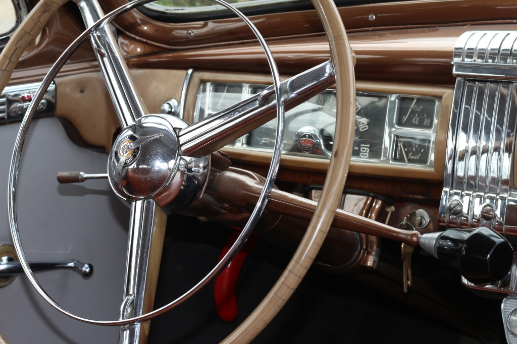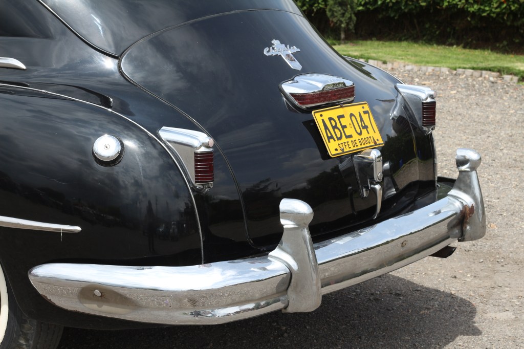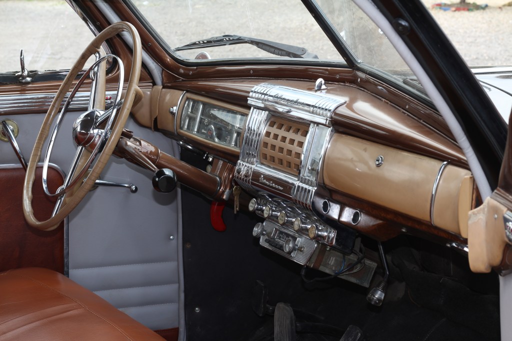 Impulsado por un motor de seis cilindros en línea y una transmisión semi-automática Fluid Drive, este sedán proporciona una experiencia de conducción suave y confiable, ideal para disfrutar de la auténtica sensación de manejar un clásico estadounidense. Los neumáticos de banda blanca y los acabados cromados completan su apariencia imponente y distinguida.