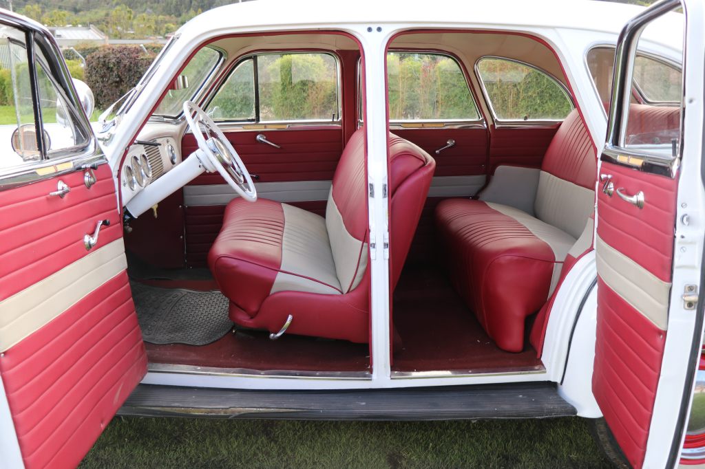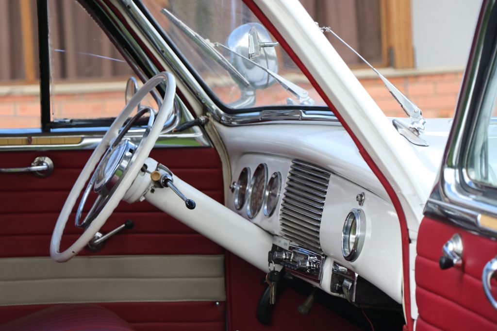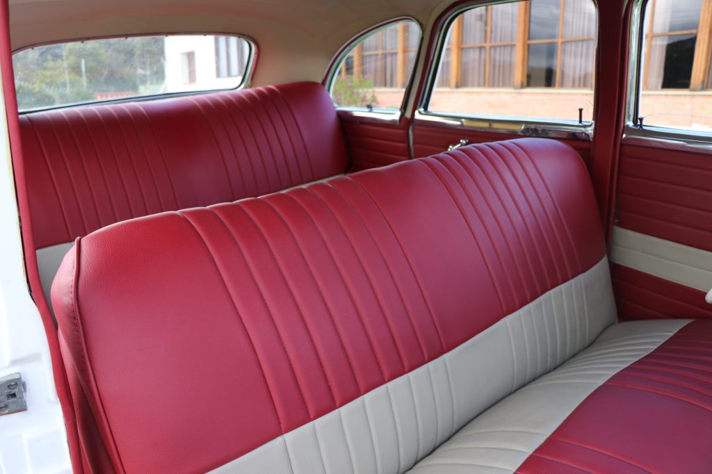 En su interior, los asientos tapizados en una elegante combinación de rojo y beige ofrecen un ambiente cálido y sofisticado, acompañado por un tablero metálico original con detalles cromados e instrumentos de época. Cada elemento refleja la atención al detalle y la calidad que caracterizaban a Buick en esa década.