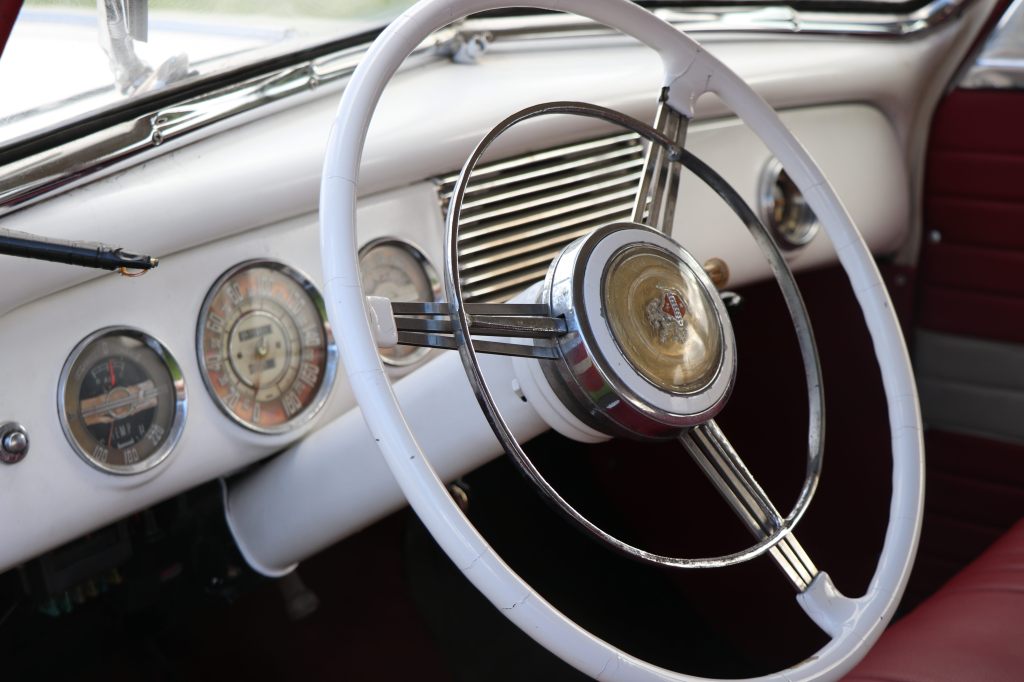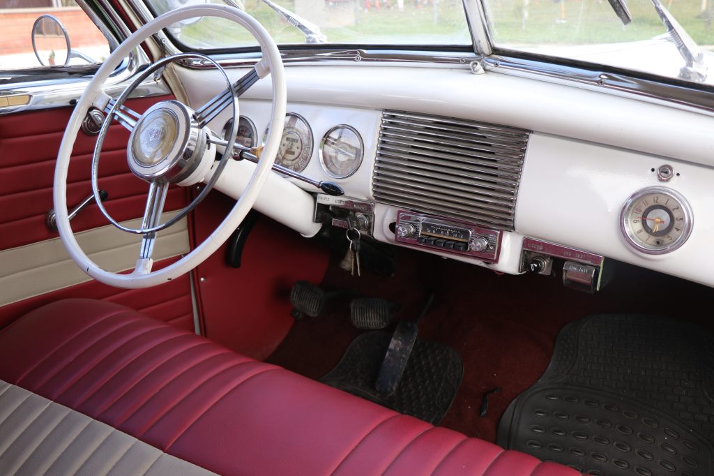 Equipado con un motor de ocho cilindros en línea y una transmisión manual de 3 velocidades, este Buick ofrece una conducción suave, potente y silenciosa, fiel a la reputación de confort que la marca construyó en los años cuarenta. Los rines bicolor en rojo y beige complementan su estética refinada, aportando un toque distintivo y armonioso.