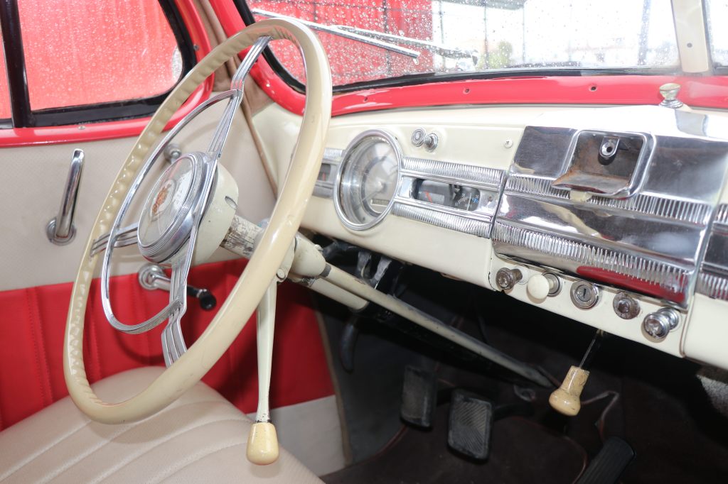 Impulsado por un motor de ocho cilindros en línea y una transmisión manual de 3 velocidades, este Packard ofrece una conducción suave y poderosa, fiel al compromiso de la marca con la calidad y el rendimiento. Los neumáticos de banda blanca y sus impecables acabados cromados completan la imponente presencia de este clásico.