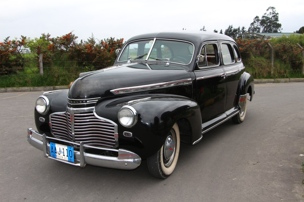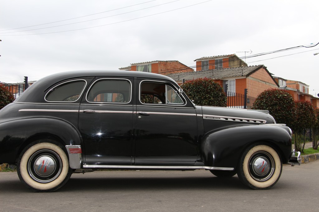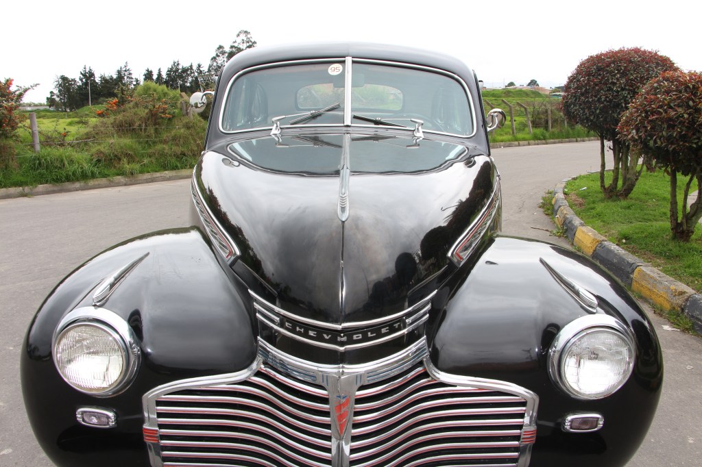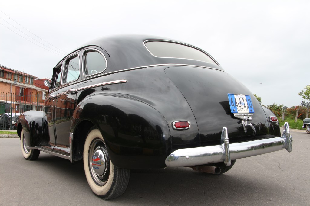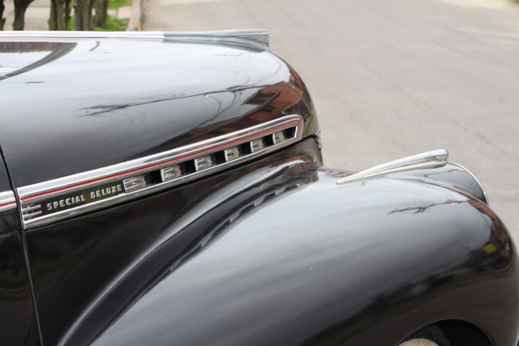 Este modelo de preguerra encarna la transición de Chevrolet hacia un diseño más robusto y aerodinámico, con su icónica parrilla cromada horizontal ancha, faros integrados y molduras laterales cromadas que se extienden a lo largo de la carrocería. El interior destaca un tablero de metal con detalles de imitación madera, indicadores rectangulares típicos de la época y un gran volante adornado con el escudo de Chevrolet.